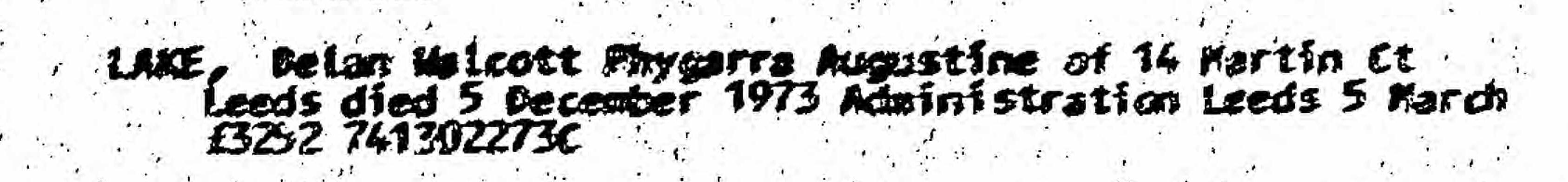 Lenny also had a half brother called Delan Lake who was born nearly nine years after Lenny on 31st March 1935 but he was known to everyone as "Wally". He had a tragic death on Wednesday 5th December 1973 as this report of the inquest in a local paper states