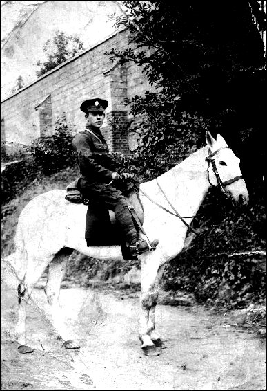 Prior to the First World War Reg was employed as a footman in service at at Stradey House. Stradey House is now, The Stradey Park Hotel, a 77 bedroom Hotel situated just outside Llanelli off the A484. He was not suited to a life in service and so he returned home and started work in the local colliery no doubt alongside his brother(s). At the declaration of war in 1914 Reg joined the Welsh Regiment . The photograph 9see below) was taken sometime in 1915 - 16 and shows Reg astride an Officers horse. Reg was a batman at the time. To date I know little of Reg's servive record beyond the fact that he suffered mustard gas burns to the legs during one engagement