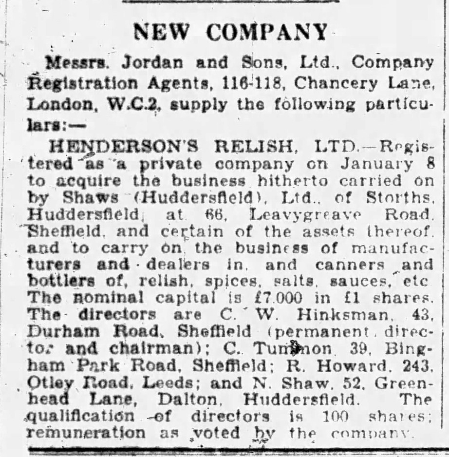 I have been unable to find any photographs of Henry and his family which is unusual given his status as the founder of Henderson's Relish. And so if anyone can help me obtain any it would be great to put a face to a name that is part of my life.