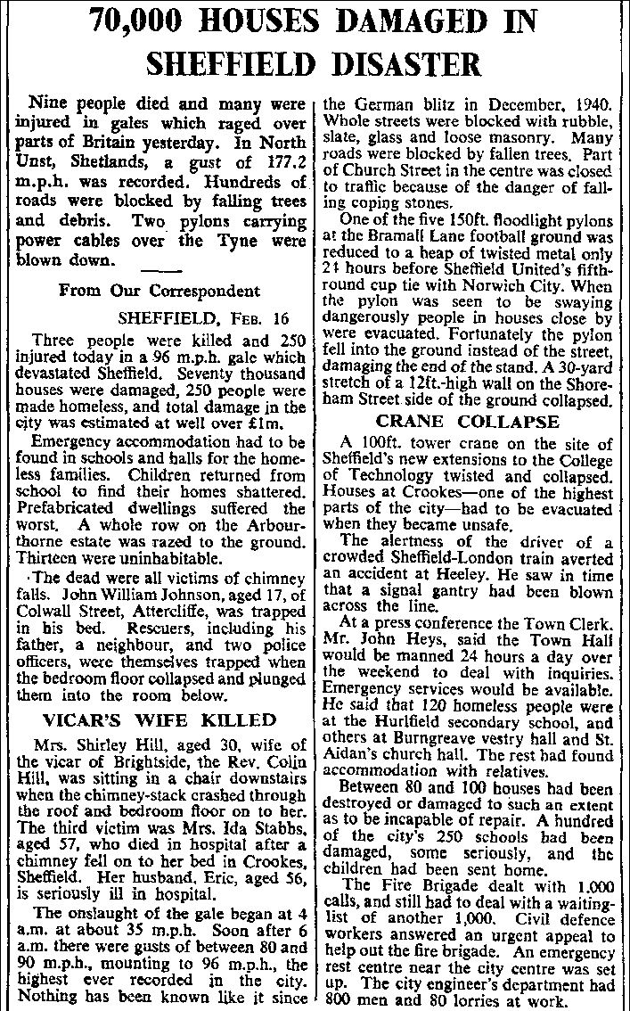 The Sheffield Gale - 16th February 1962