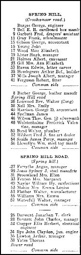 As for Spring Hill, the list of persons residing there more or less mirrored the returns in the 1901 Census
